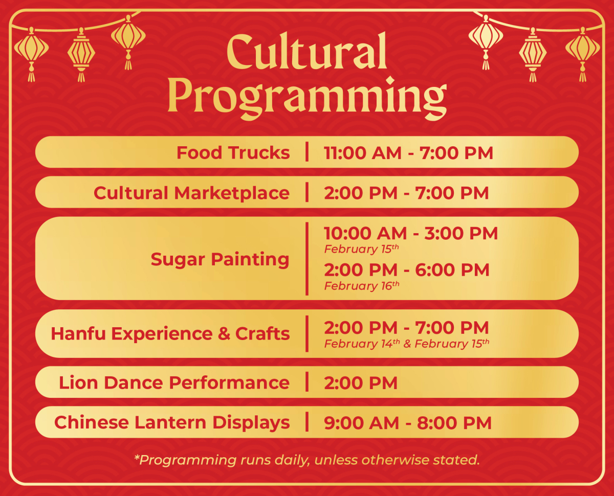 Browse our Cultural Marketplace from 2:00 PM to 7:00 PM, featuring a variety of vendors. The Marketplace will be home to cultural artisans, including the Hanfu Cultural Association, providing traditional crafts and experiences including Hanfu try-on, paper cutting and more! We will also host daily Lion Dance performances and meet and greets, and Chinese sugar painting.